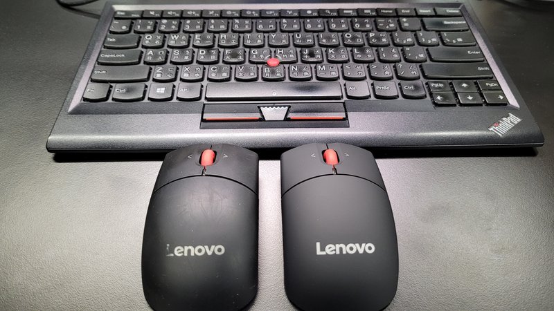 這顆新滑鼠搭配著小紅點鍵盤,