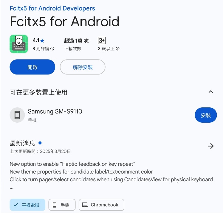 安裝的核心程式 Fcitx5 for Aodroid,