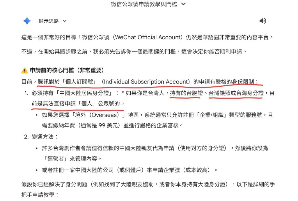 否則境外人士是無法申請個人的公眾號!