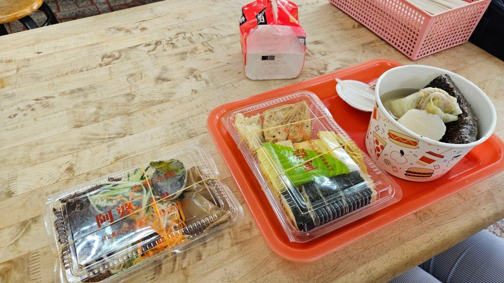 豬血糕就是完整一大片、高麗菜捲的用量也很足夠,